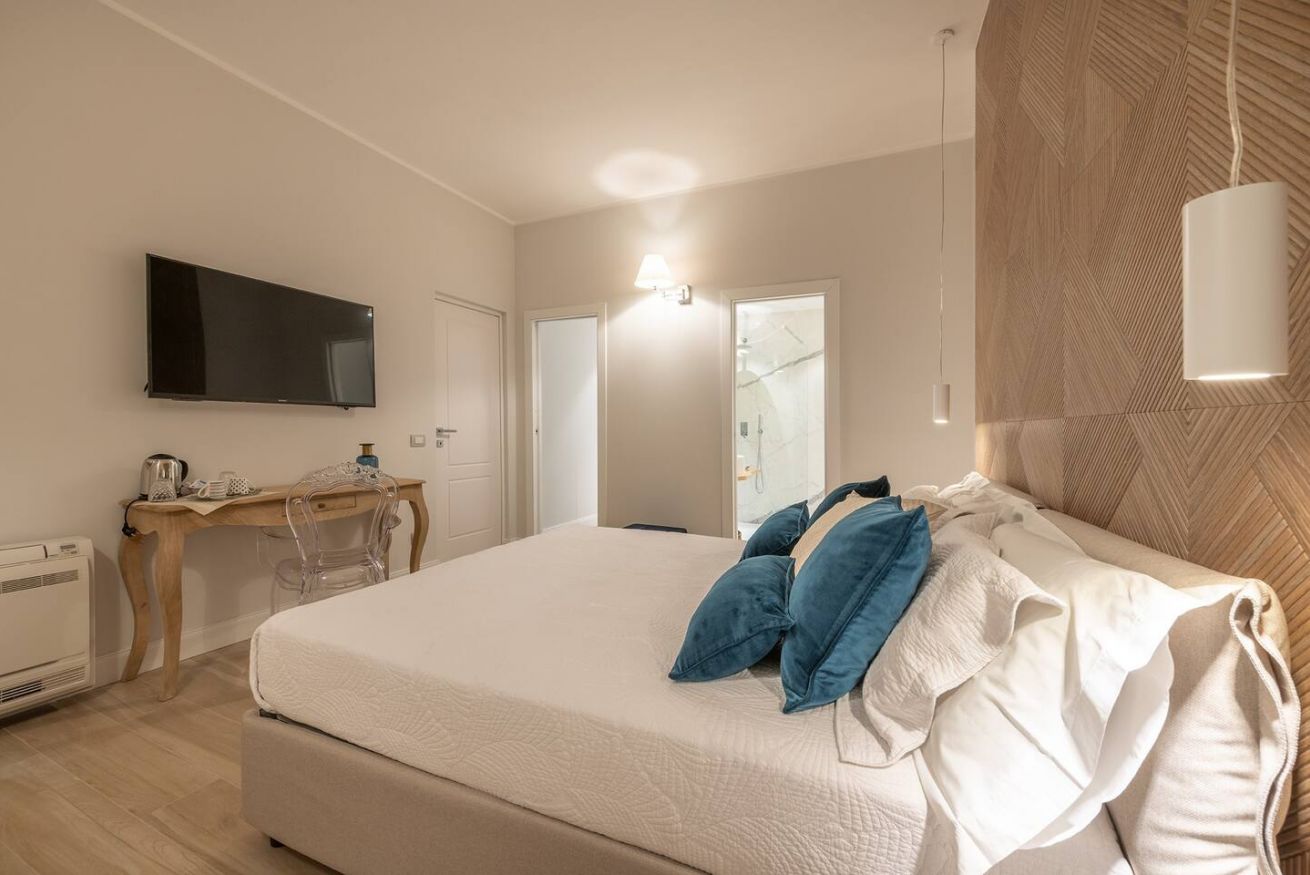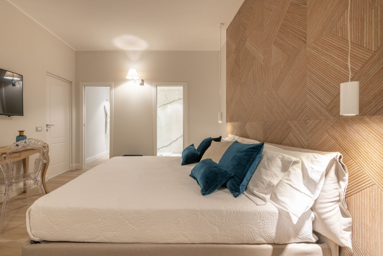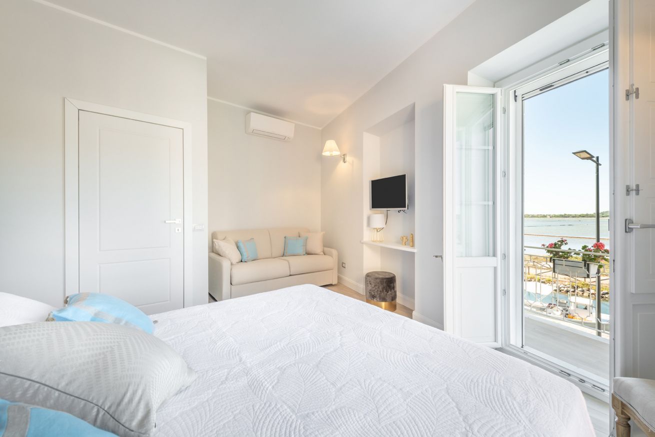 King Superior, Matrimoniale Deluxe, Matrimoniale Deluxe con vista sulle saline e Matrimoniale Deluxe con affaccio laterale sulle vie interne di Carloforte. Aquamadre propone ai suoi ospiti quattro diverse camere con standard di eccellenza difficili da trovare nel resto dell’isola. Come l’acqua madre contenuta nell’ultima vasca delle saline, così la nostra moderna struttura è il fiore all’occhiello dell’offerta extralberghiera di Carloforte. Dettagli, finiture, soprammobili, arredamento: le camere di Aquamadre sono state realizzate con i migliori materiali e accessori disponibili in commercio, frutto di una selezione maniacale di porcellane, marmi, lampadari, sanitari e quanto potesse arricchire l’ambiente in ogni momento del giorno e della notte. Il risultato va oltre il semplice alloggio di lusso, trasformando una vacanza, breve o lunga che sia, in un’esperienza destinata a imprimersi nella memoria, con la certezza di trovarsi nel punto più vicino al centro di Carloforte e ai suoi straordinari tesori.