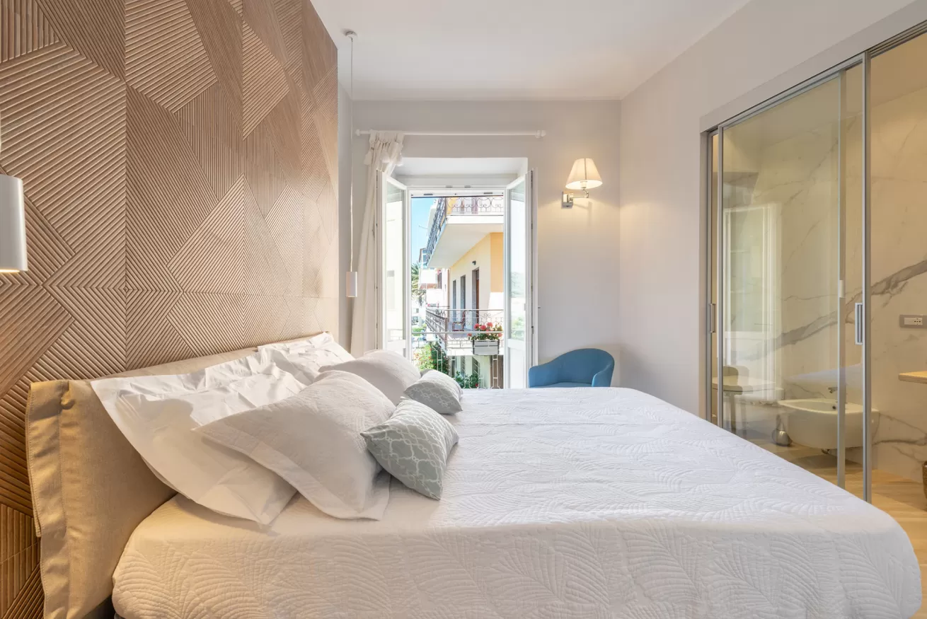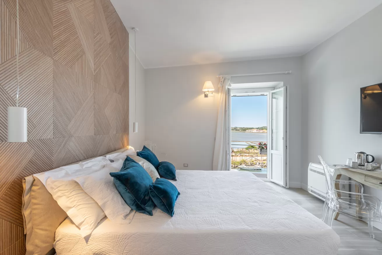 King Superior, Matrimoniale Deluxe, Matrimoniale Deluxe con vista sulle saline e Matrimoniale Deluxe con affaccio laterale sulle vie interne di Carloforte. Aquamadre propone ai suoi ospiti quattro diverse camere con standard di eccellenza difficili da trovare nel resto dell’isola. Come l’acqua madre contenuta nell’ultima vasca delle saline, così la nostra moderna struttura è il fiore all’occhiello dell’offerta extralberghiera di Carloforte. Dettagli, finiture, soprammobili, arredamento: le camere di Aquamadre sono state realizzate con i migliori materiali e accessori disponibili in commercio, frutto di una selezione maniacale di porcellane, marmi, lampadari, sanitari e quanto potesse arricchire l’ambiente in ogni momento del giorno e della notte. Il risultato va oltre il semplice alloggio di lusso, trasformando una vacanza, breve o lunga che sia, in un’esperienza destinata a imprimersi nella memoria, con la certezza di trovarsi nel punto più vicino al centro di Carloforte e ai suoi straordinari tesori.