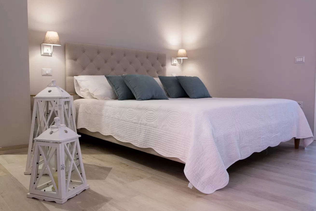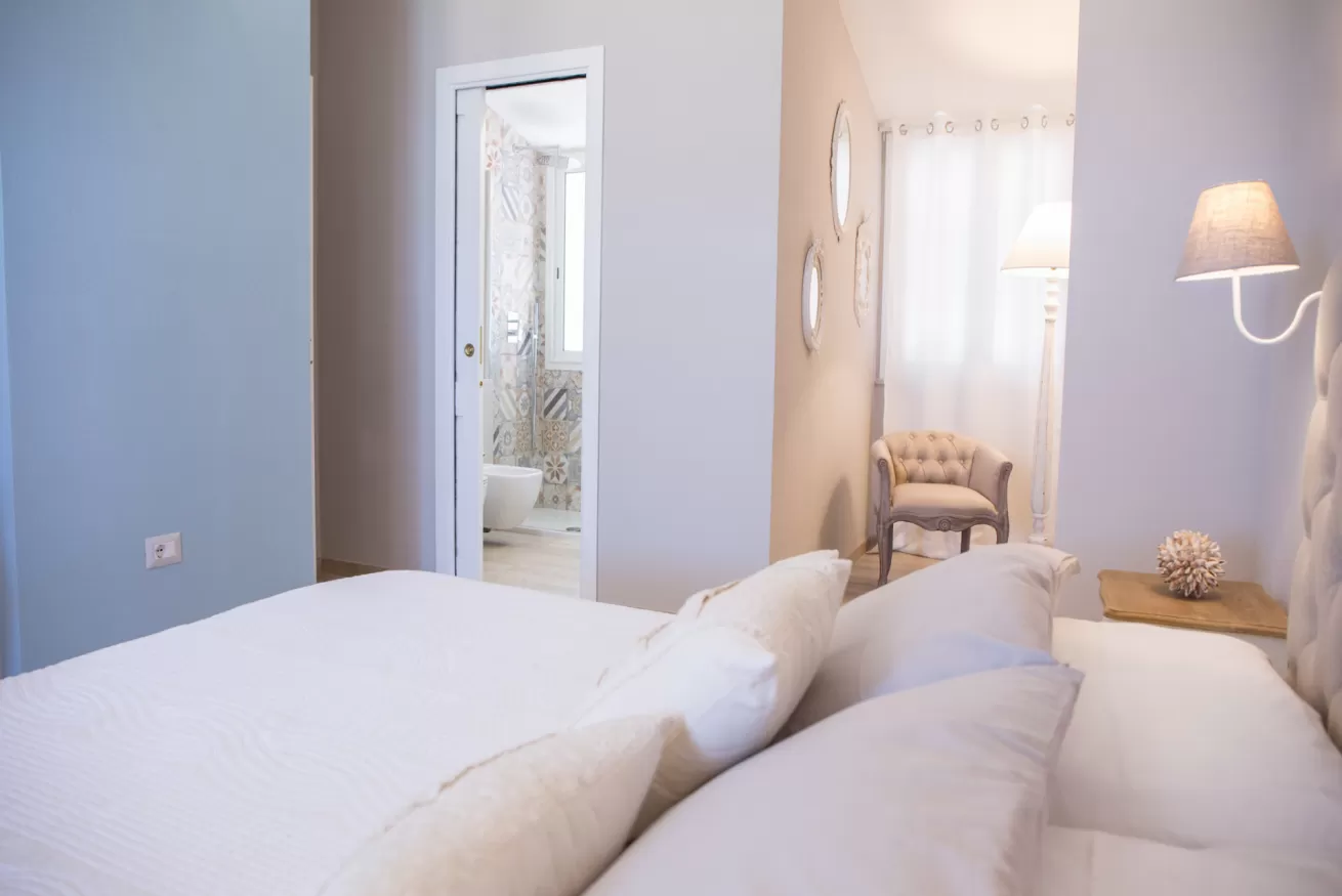 Con i suoi 30 metri quadri, la suite è dotata di tutti i comfort di un hotel 5 stelle: letti memory foam, minibar, bollitore con tisane biologiche, kit cortesia e molto altro. Le tonalità pastello e lo stile shabby chic creano un'atmosfera sobria e accogliente, ideale per dimenticare il caos quotidiano e concedersi un momento di totale serenità. La quiete del luogo e i comfort esclusivi rendono questa suite un’oasi perfetta per un soggiorno rigenerante.