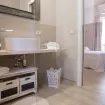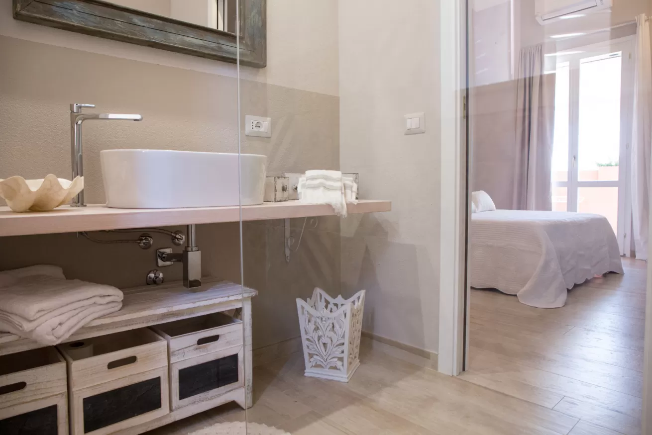Gli interni, decorati in tonalità pastello bianco panna e grigio tortora, seguono uno stile shabby chic, donando un’atmosfera sobria ed elegante. Con una superficie di circa 30 mq, la suite offre spazio, intimità e relax, ideale per dimenticare lo stress quotidiano.