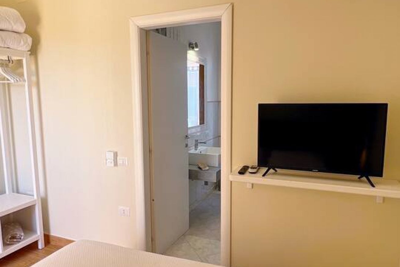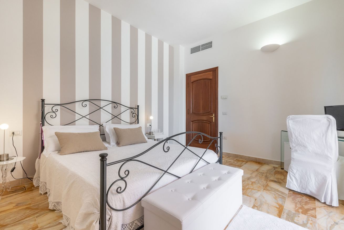 Le camere di Villa Iole offrono un rifugio accogliente nel cuore di Carloforte, con un arredamento che fonde il fascino retrò degli antichi mobili in legno massello e marmi di pregio con comfort moderni. Ogni camera è dotata di bagno privato, due con bagno interno alla camera e uno esterno, ma sempre esclusivo per gli ospiti. Ogni bagno è fornito di doccia, garantendo la massima comodità. Le camere, spaziose e luminose, sono perfette per famiglie, coppie e viaggiatori in cerca di una sistemazione tranquilla e pratica, con aria condizionata, TV e servizio di pulizia quotidiano. La posizione centrale ma silenziosa di Villa Iole permette di godere della vicinanza ai servizi principali, come supermercati, negozi e farmacie, senza rinunciare alla tranquillità. Un’esperienza autentica in un ambiente che richiama la tradizione delle case di paese, per un soggiorno che farà sentire gli ospiti come a casa.